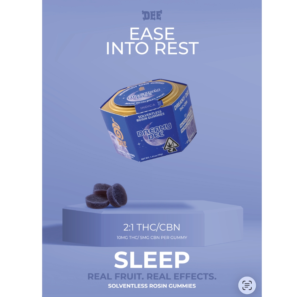 Dee Dreamy Dee Lavender Berry THC:CBN (I) Rosin Gummies 100mg