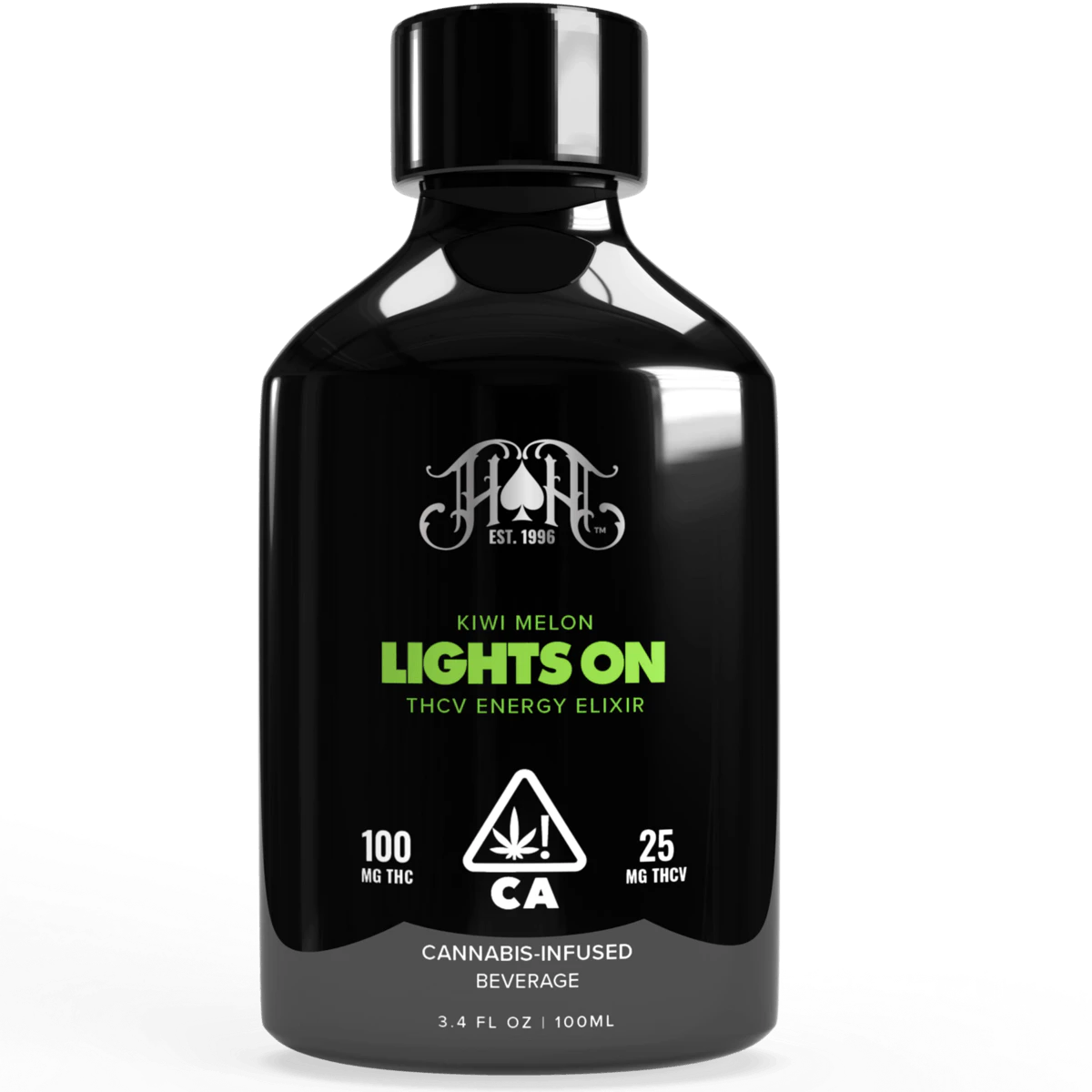 Introducing Heavy Hitter's Lights On Energy Elixir. Each Energy Elixir is packed with 100mg of THC, 25mg of THCV, and 100mg of caffeine to ignite your senses and unleash a wave of uplifting energy. Delivering a patented fast-acting formula and available in a sleek, low profile design, these Energy Elixirs are your ultimate on-the-go companion that slide effortlessly into your daily routine. Pure, potent, and powerful, experience best-in-class cannabis with Lights On Energy Elixirs.