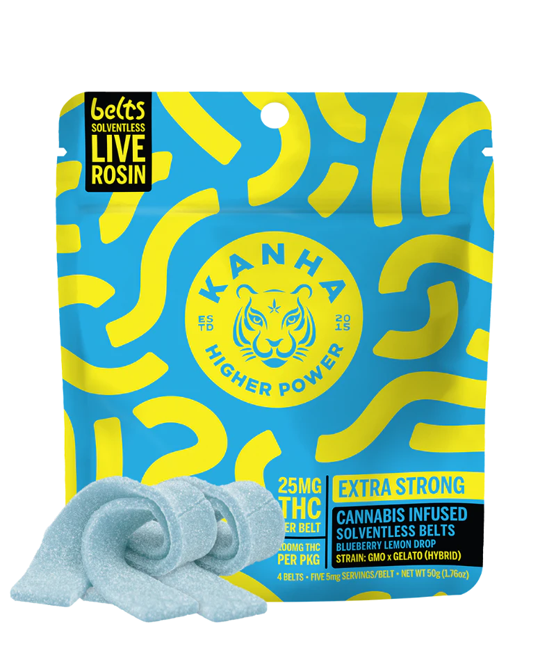Feel the perfect balance with our Blueberry Lemon Drop Belts, a vibrant Hybrid mix designed for the harmony hunters. Formulated with GMO Cookies and Gelato solventless live rosin for a comforting, mood-boosting journey. Instructions: Eat 1 serving. Onset