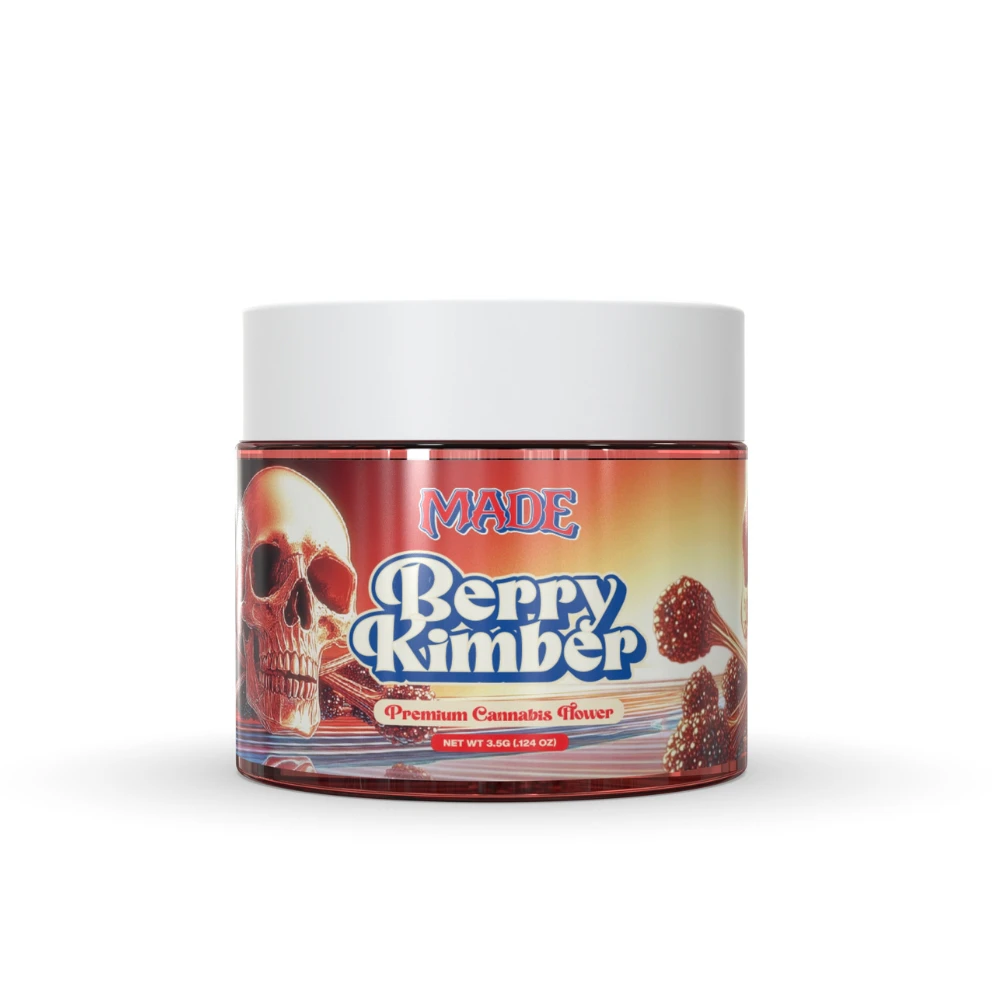 Berry buds have small and super dense grape-shaped bright emerald-green nugs with vibrantly purple undertones, lots of super thin orange hairs and a frosty, blanketed coating of tiny, bright purple-tinted white crystal