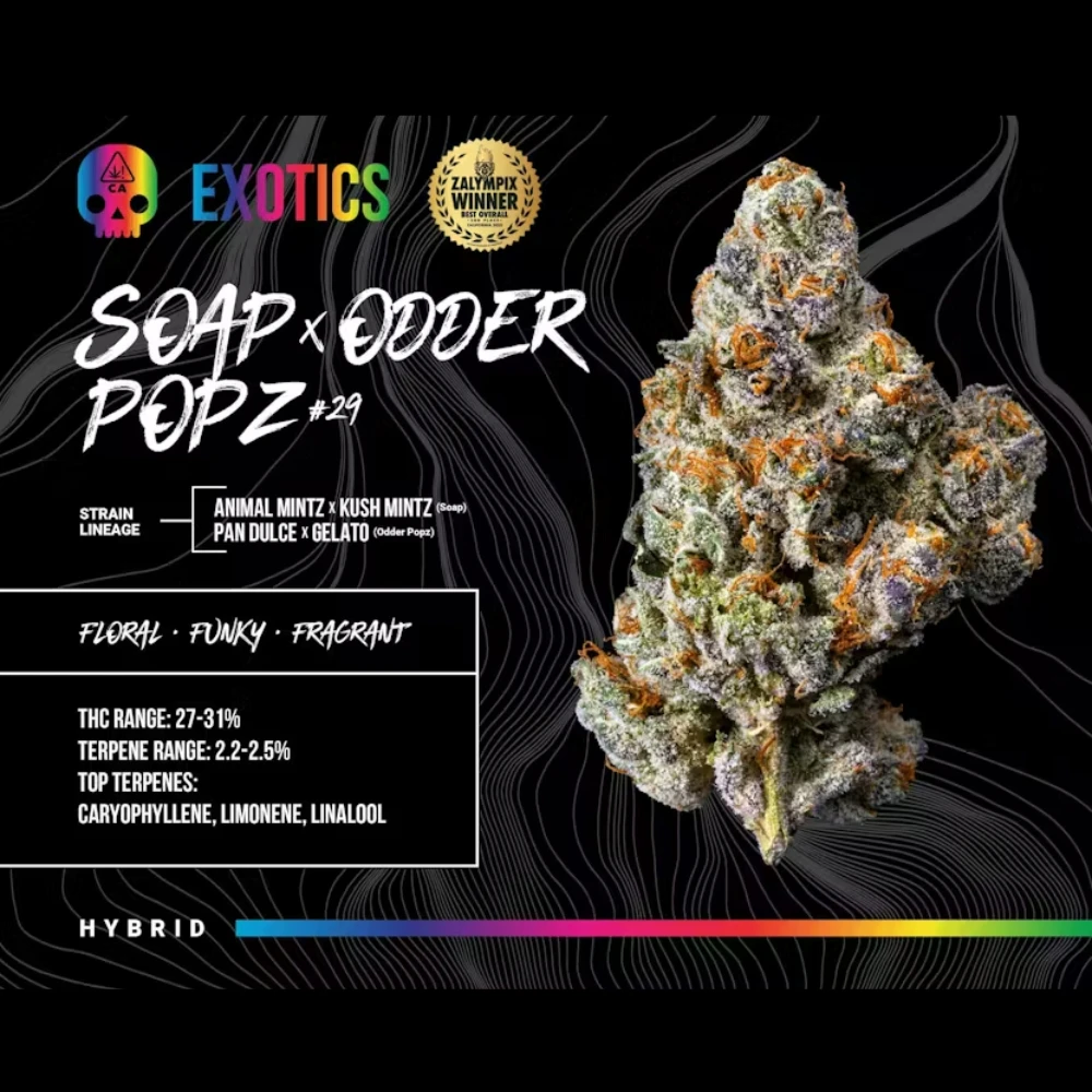 This soap isn't for bubble bathes. Smooth sage, pine, and sweetgrass flavors hit first, with sticky green-and-purple nugs covered in frosty orange hairs. The high? Instant head change—stoney, but chill enough to keep you functional. It's the perfect balance of relaxation without couch-lock. If you're looking to vibe out and laugh at random stuff, lather it on.