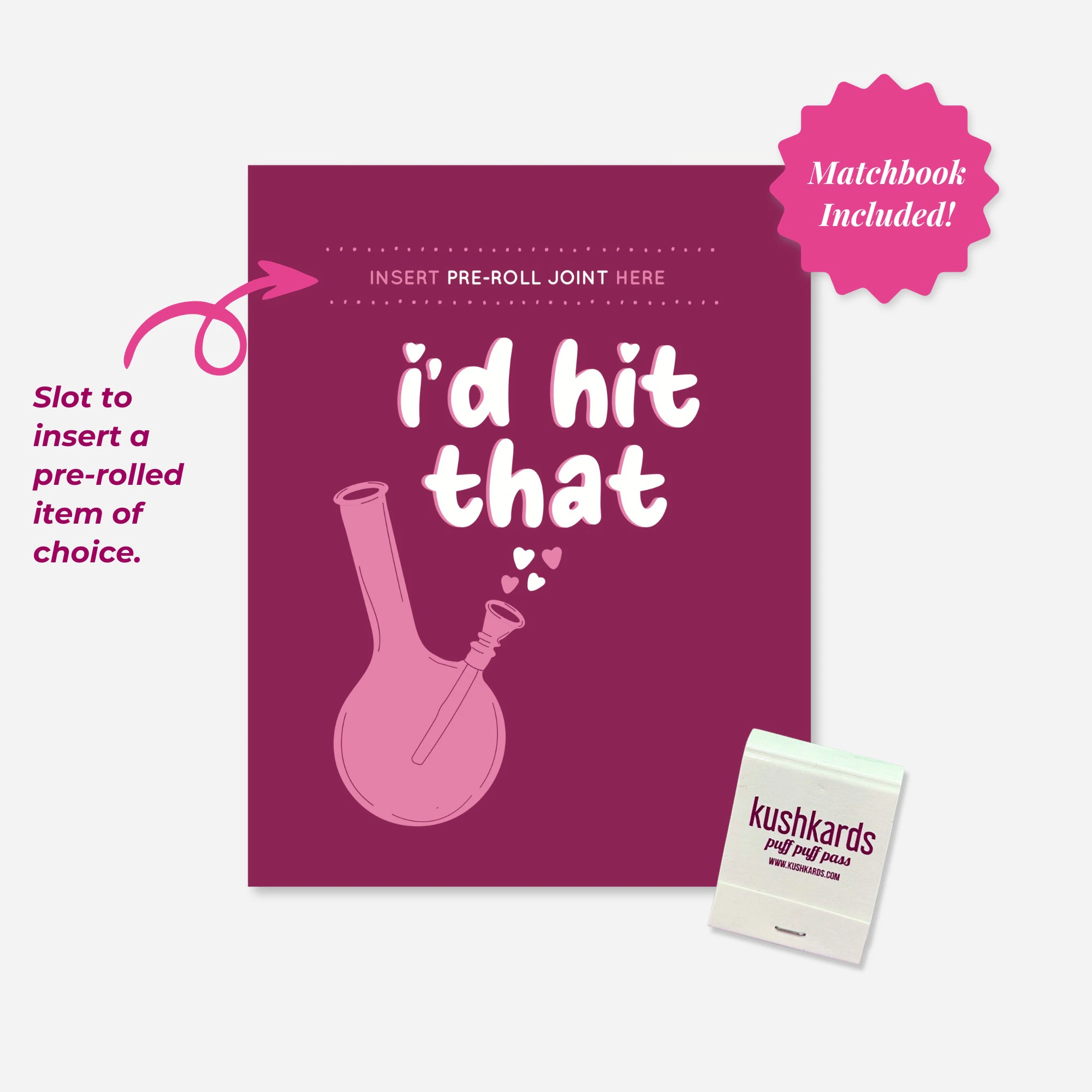 Ready for a giggle with your favorite sesh friend? Check out our 'I'd Hit That' greeting card, where humor meets hazy fun! This card comes with a sassy sketched bong, complete with love hearts, all set against a vibrant purple backdrop