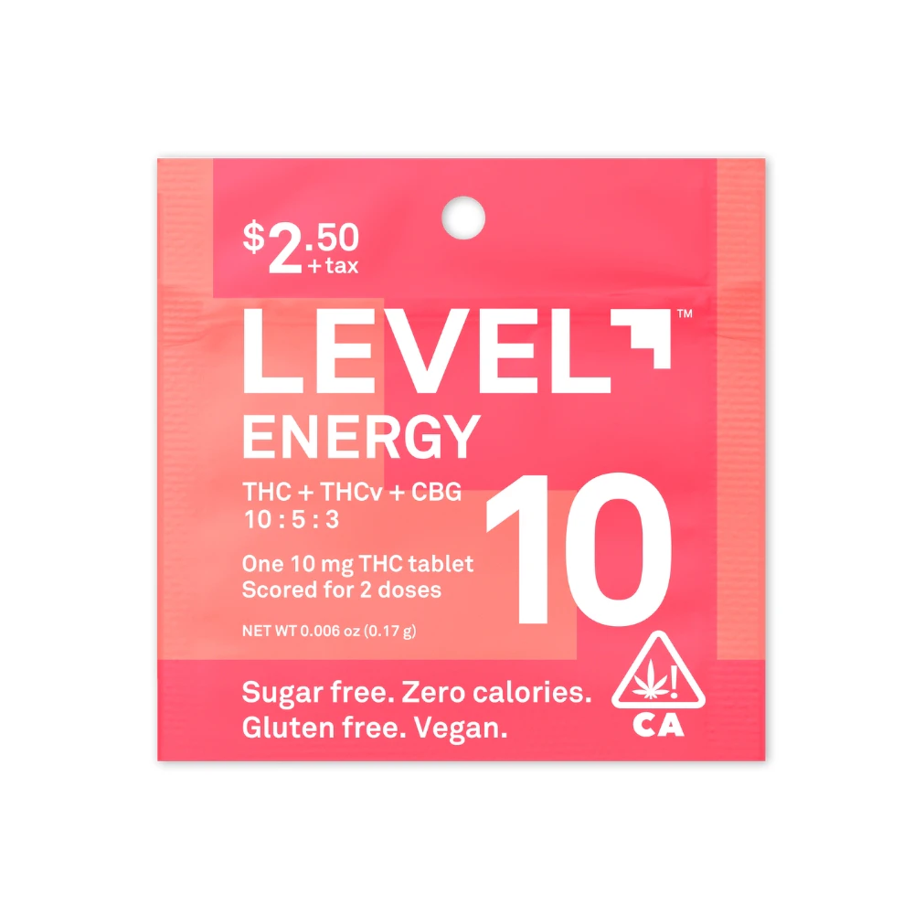 Tired of sugary gummies and messy edibles that leave you feeling sluggish? LEVEL 10 Energy tablets are here to revitalize your day. Each tablet combines the power of 10 mg delta-9 THC, 5 mg of THCv, and 3 mg of CBG in a precisely formulated blend designed to deliver clean, focused energy and help you conquer your to-do list. These highly effective, long-lasting tablets are sugar-free, gluten-free, vegan, and contain zero calories. Plus, they're scored for easy splitting, so you can dial in your perfect dose every time. Simply swallow with liquid.
