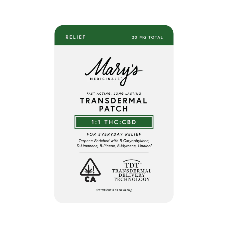 Mary's Relief 1:1 CBD:THC Transdermal Patch 20mg