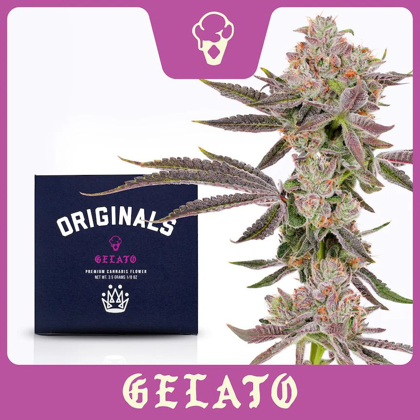 Originals Family Farm Cultivation's Gelato is the purest and most potent cut you can find in California. Bred from a hardy Sunset Sherbet cross, Gelato is famous for its potentially blissful highs and heavily sedative effects. You can find this strain in our premium indoor eighths, small buds, 1-gram pre-rolls, and 1.5-gram blunt collaboration with Royal Blunts. Our Gelato reeks of creamy vanilla with a sharp and spicy bite at the end. A THC powerhouse, this strain is a favorite among creatives that claim it may provide a strong cerebral buzz. For medical users, Gelato might be ideal for combating insomnia, fatigue, and chronic pain.