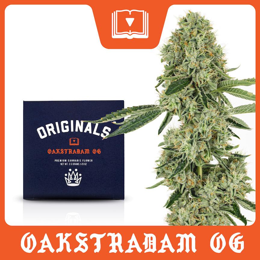 Originals Family Farms' Oakstradam OG is a celebrity-cut, indica-dominant strain descended from an iconic Northern California cultivar and a Hindu Kush plant from Amsterdam, a lineage that gives it bold, peppery, sweet, and musky flavors and an aroma of spicy funk and sugary lemons. Revered for its classic OG genetics turned up a notch, the strain produces dense, resin-rich buds and delivers a deeply relaxing and euphoric experience ideal for melting away stress and promoting mental and physical serenity