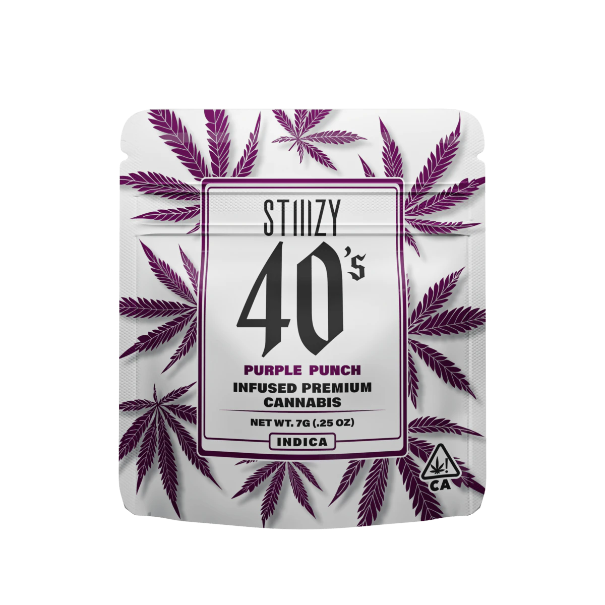Elevate your flower experience with the new STIIIZY 40's infused flower. We have expanded our 40's line by incorporating our premium cannabis flower infused with our finest THC-A Diamonds for an extra punch. We call them 40's because our infused flower strains are potent, testing at 40% total cannabinoids content. Now you can roll your own 40's with STIIIZY infused flower, the possibilities are endless with unmatched potency.