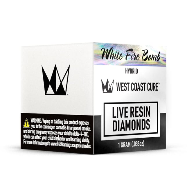 White Fire Bomb Diamonds are a cutting-edge Hybrid mix of spicy-sweet terpenes and psychoactive cannabinoids. Large, chunky, crystal-clear, and coated with an amber strain-specific terp sauce, the flavor expresses explosive traits of candied-earth when dabbed. Sit down, strap in, and get ready for its effects! Introspective and exhilarating, the high from these diamonds allows for greater mindfulness and enjoyment of those special moments.