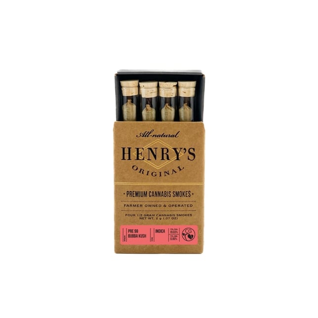 Bubba Kush is an indica that has gained notoriety in the US and beyond for its heavy tranquilizing effects. Sweet hashish flavors with subtle notes of chocolate and coffee come through on the exhale, delighting the palate as powerful relaxation takes over. From head to toe, muscles ease with heaviness as dreamy euphoria blankets the mind, crushing stress while bringing happy moods. Each Henry's Original pre-roll is packed with heirloom cannabis grown with the utmost care by master cultivators. We grind our flower in a custom grinder to ensure the finest consistency for a smooth, slow-burning smoke, and hand-roll each joint to ensure consistent quality.